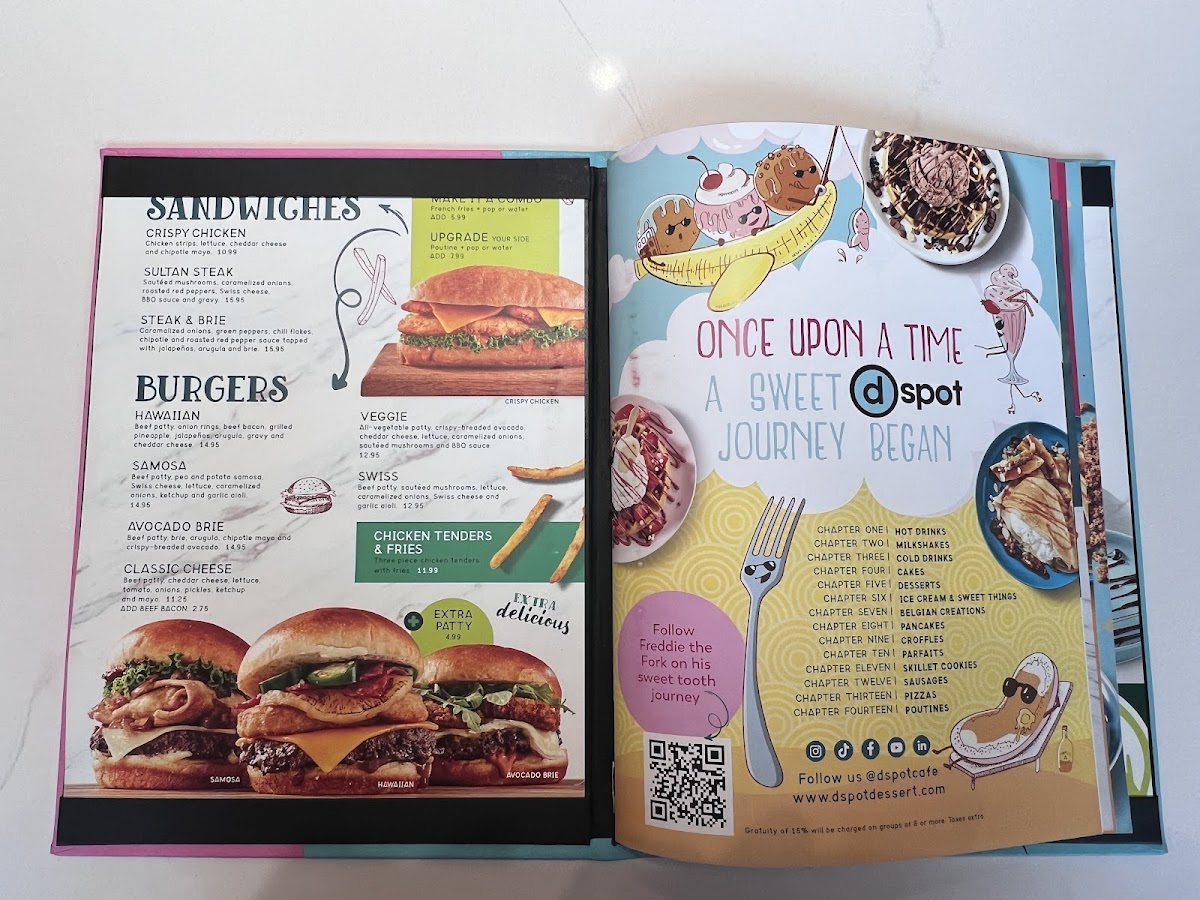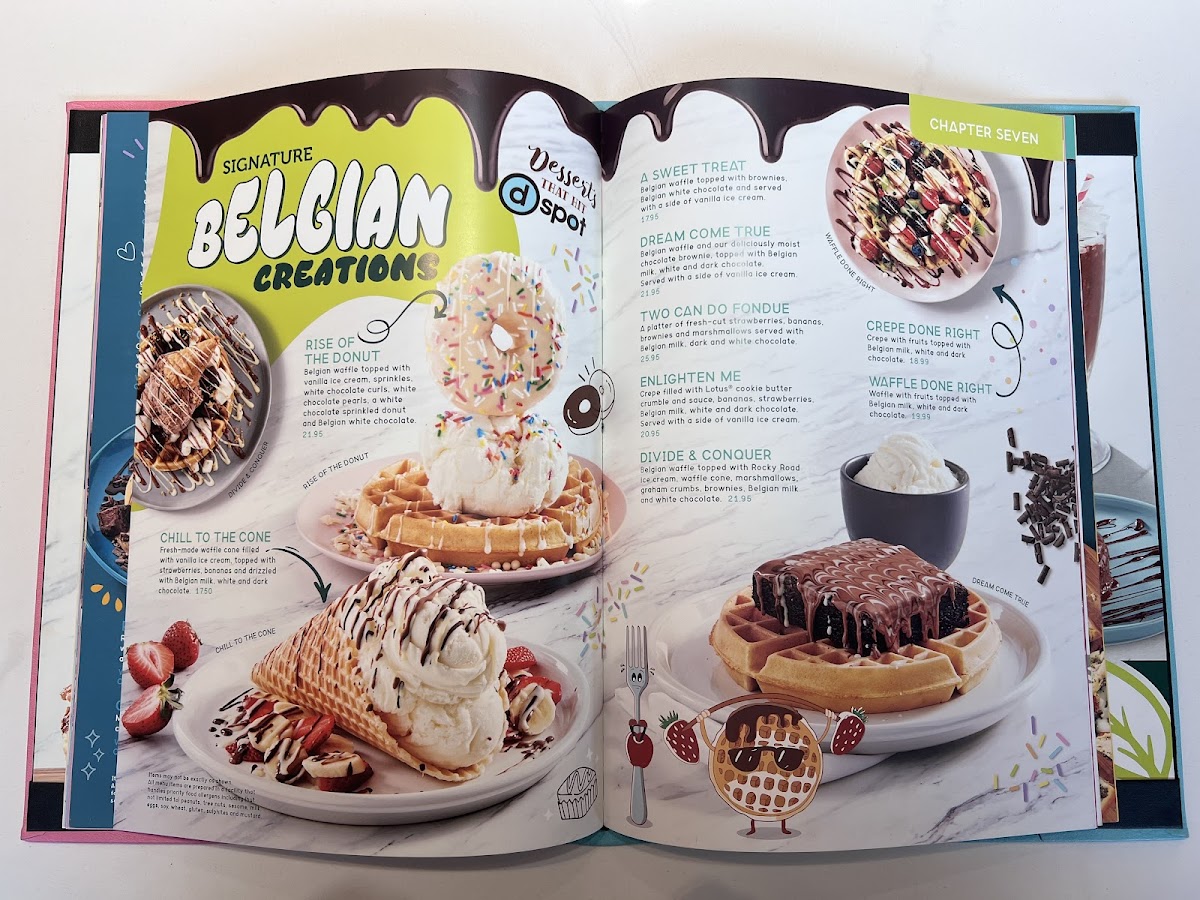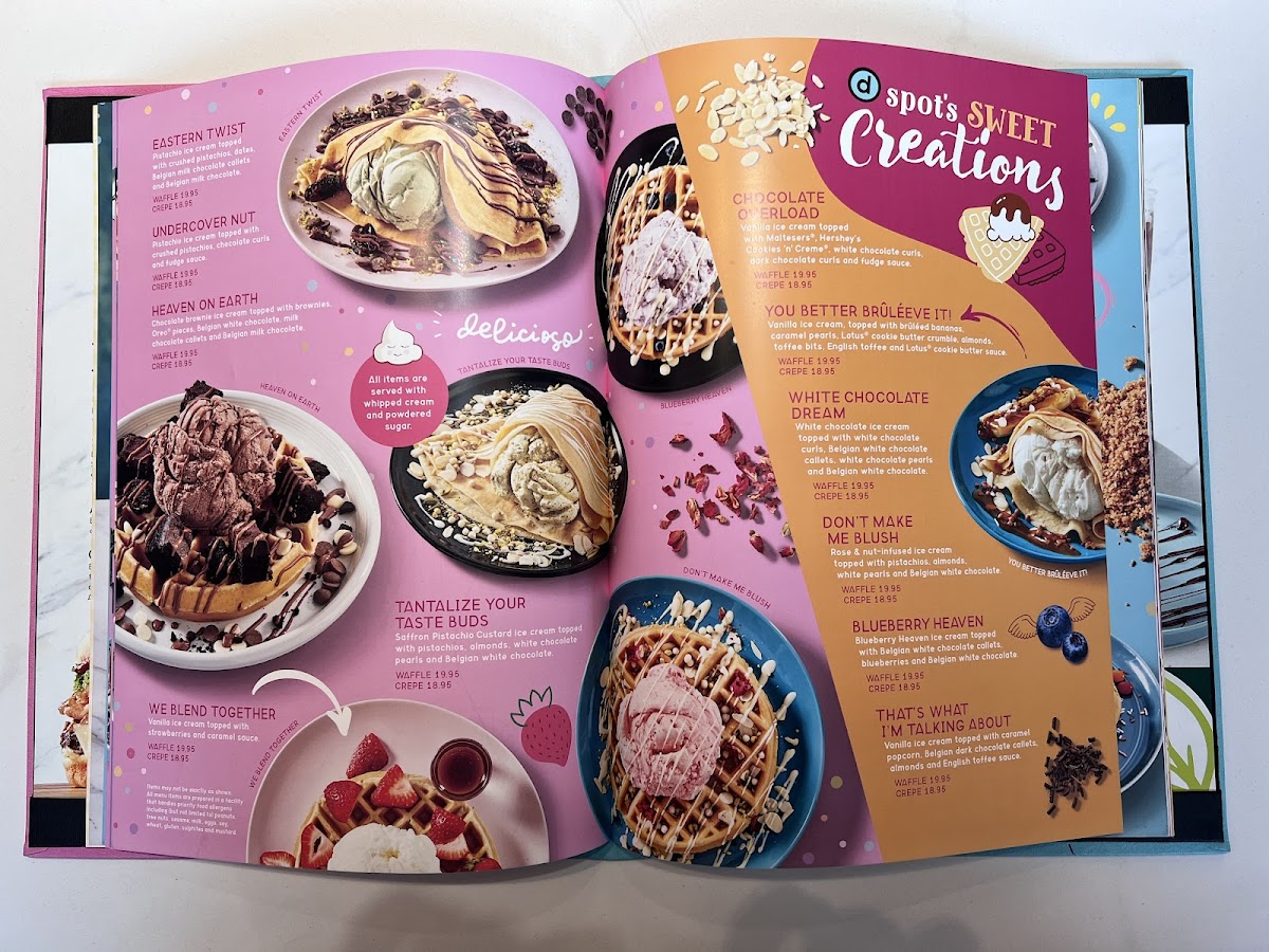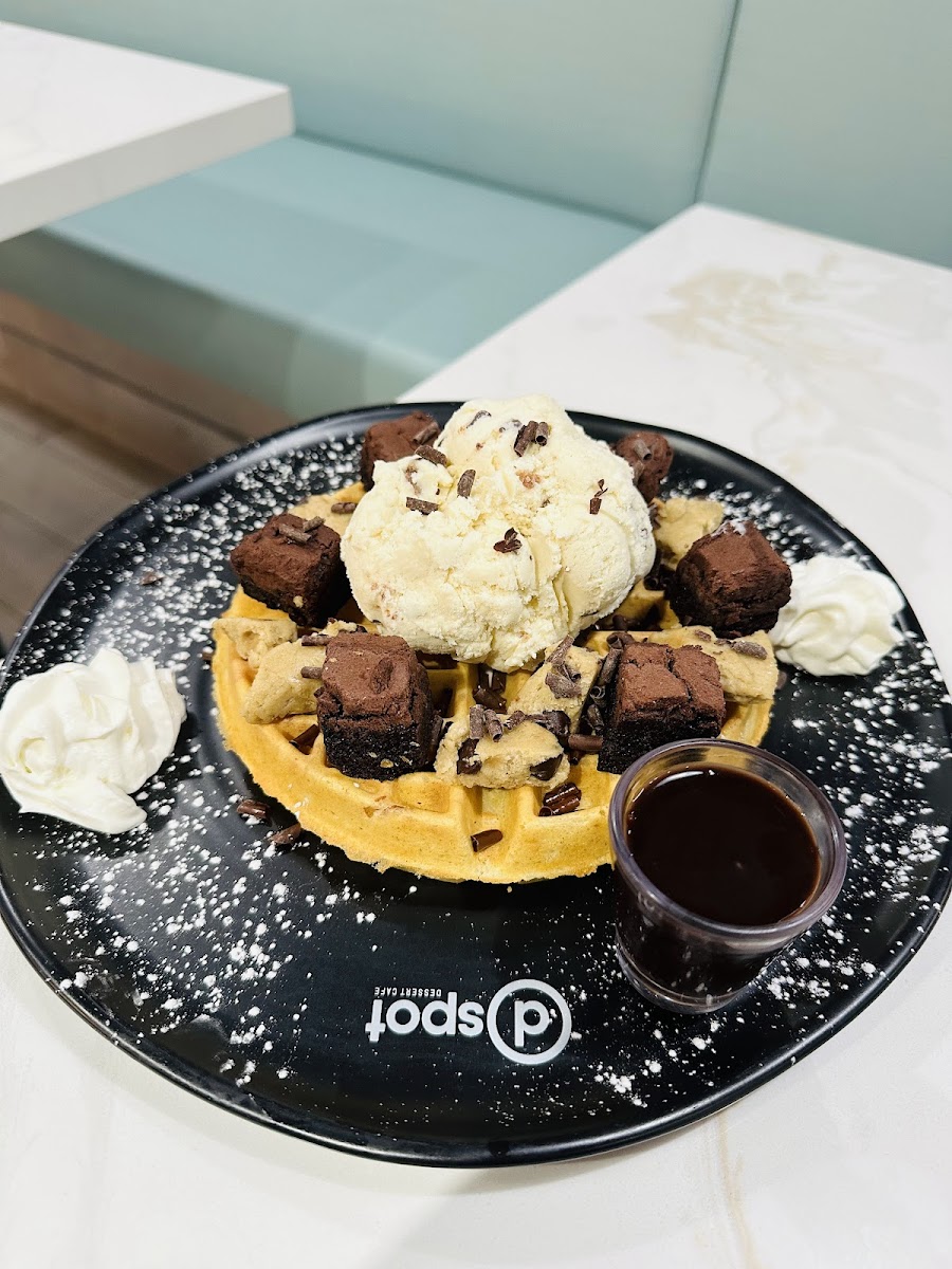 D Spot’s menu is a treasure trove of inventive desserts that promise to tantalize your taste buds. Dive into their signature offerings, like the Something To Talk About Waffle, a lavish creation topped with rich Hazelnut Crunch ice cream, crunchy hazelnuts, chocolate curls, and drizzled with the irresistible Nutella. For a whimsical twist, the Candy Land Waffle features birthday cake ice cream adorned with sprinkles, Smarties®, and cotton candy—perfect for making any day feel like a celebration.